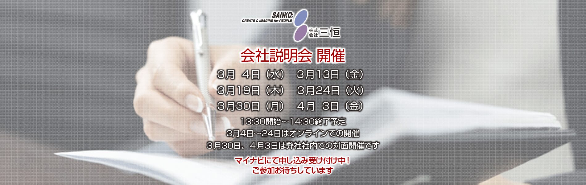 この度は、株式会社 三恒に興味を持っていただき、誠にありがとうございます。 マイナビよりエントリーをお願いします。